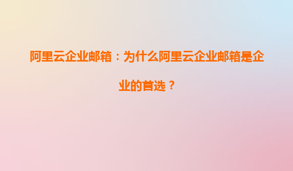 阿里云企业邮箱:为什么阿里云企业邮箱是企业的首选?