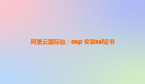在阿里云国际站购买SSL证书后,接下来的步骤是将证书安装到ASP网站中。以下是安装过程的详细步骤: