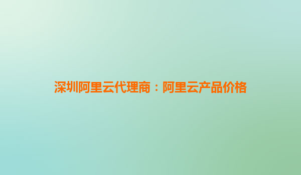 深圳阿里云代理商:阿里云产品价格与优势分析