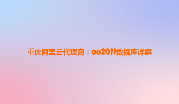 重庆阿里云代理商:AO2011数据库详解