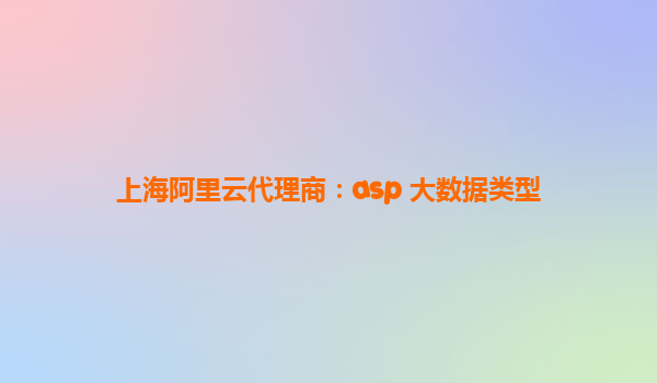 上海阿里云代理商:ASP大数据类型的优势与应用