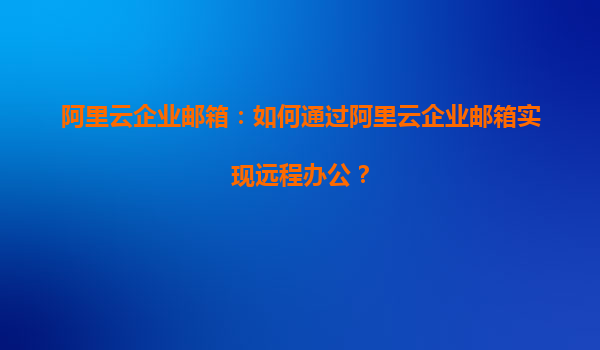 阿里云企业邮箱:如何通过阿里云企业邮箱实现远程办公?