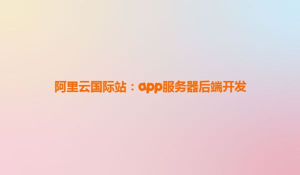 阿里云国际站:APP服务器后端开发