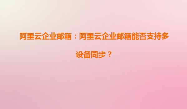 阿里云企业邮箱:阿里云企业邮箱能否支持多设备同步?