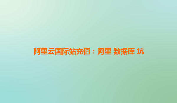 阿里云国际站充值:阿里数据库坑,你需要知道的几个优势