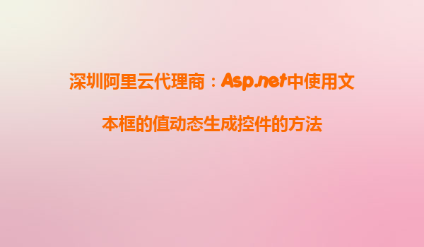 深圳阿里云代理商:Asp.net中使用文本框的值动态生成控件的方法