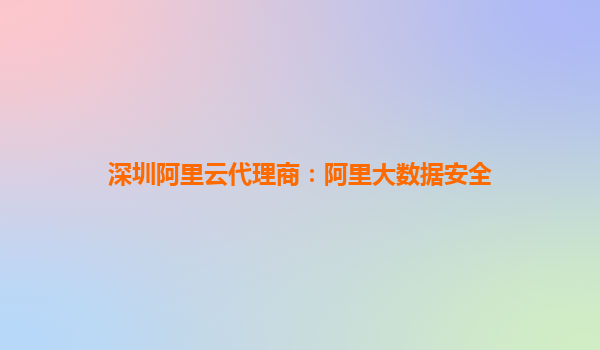 深圳阿里云代理商:阿里大数据安全的优势与应用