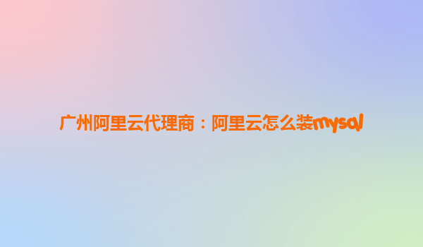 广州阿里云代理商:阿里云怎么装MySQL