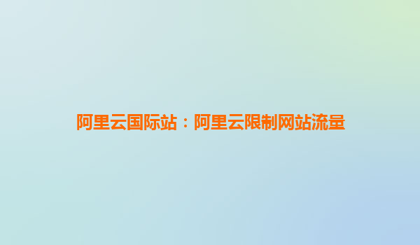 阿里云国际站:阿里云限制网站流量