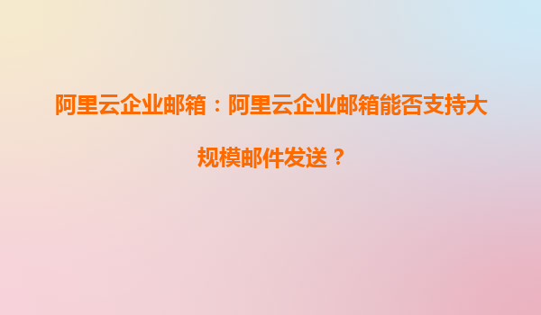 阿里云企业邮箱:阿里云企业邮箱能否支持大规模邮件发送?