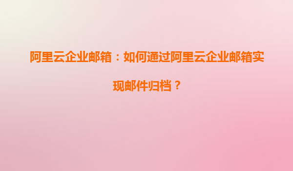 阿里云企业邮箱:如何通过阿里云企业邮箱实现邮件归档?