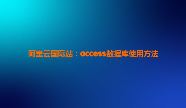 这篇文章详细介绍了Access数据库的使用方法,同时结合了阿里云国际站的优势,展示了如何在阿里云平台上高效使用Access数据库,涵盖了从基础创建到复杂应用的多个方面。
