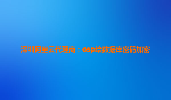 阿里云代理商:为数据库密码加密提供可靠解决方案