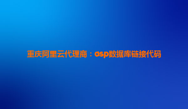 重庆阿里云代理商:ASP数据库链接代码的优势与应用