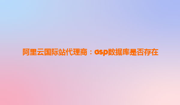阿里云国际站代理商:ASP数据库是否存在