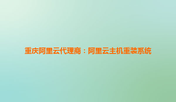 重庆阿里云代理商:阿里云主机重装系统优势与操作指南
