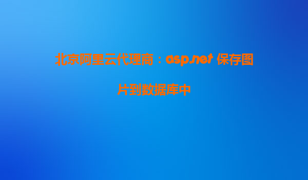 北京阿里云代理商:ASP.NET 保存图片到数据库中