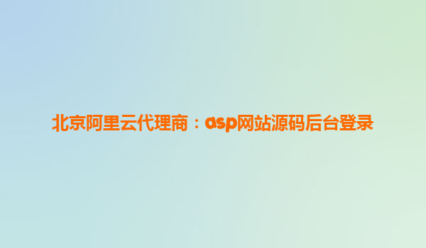 北京阿里云代理商:ASP网站源码后台登录