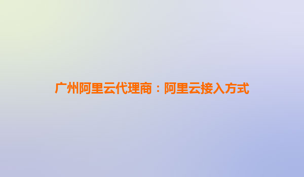 广州阿里云代理商:阿里云接入方式