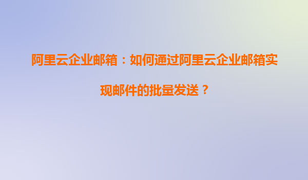 阿里云企业邮箱:如何通过阿里云企业邮箱实现邮件的批量发送?