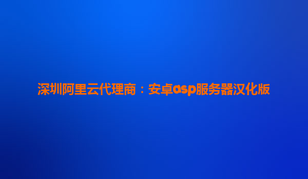 深圳阿里云代理商:安卓ASP服务器汉化版的优势