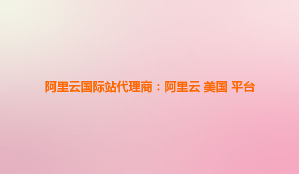 阿里云国际站代理商:阿里云 美国平台