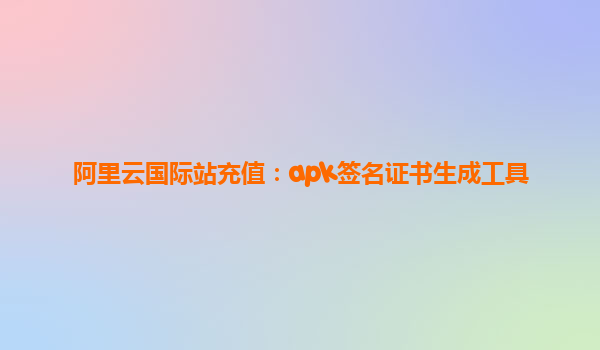 阿里云国际站充值:APK签名证书生成工具