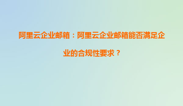 阿里云企业邮箱:满足企业合规性要求的最佳选择