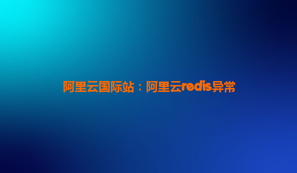 阿里云国际站:阿里云Redis异常处理与解决方案