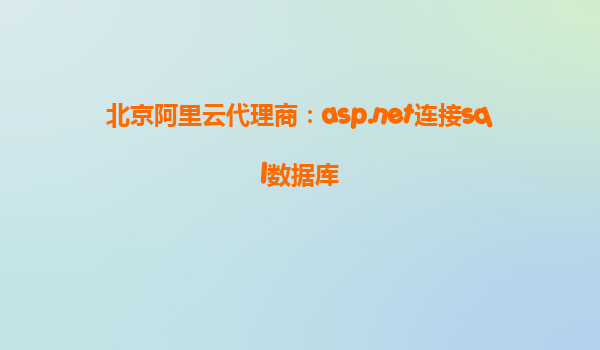 北京阿里云代理商:ASP.NET连接SQL数据库