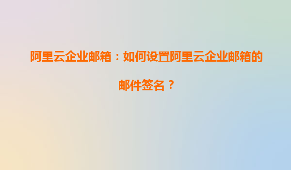 阿里云企业邮箱:如何设置阿里云企业邮箱的邮件签名?