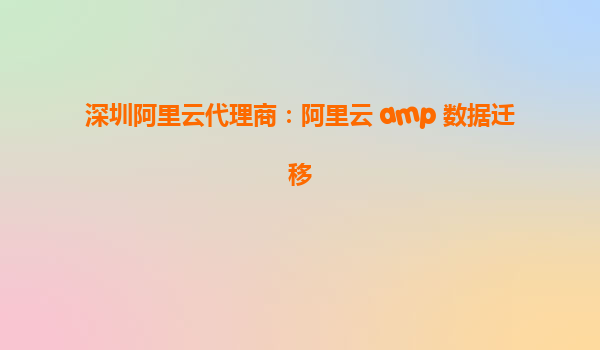 深圳阿里云代理商:阿里云 AMP 数据迁移优势与应用