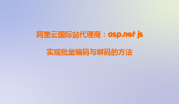 阿里云国际站代理商:ASP.NET+JS实现批量编码与解码的方法