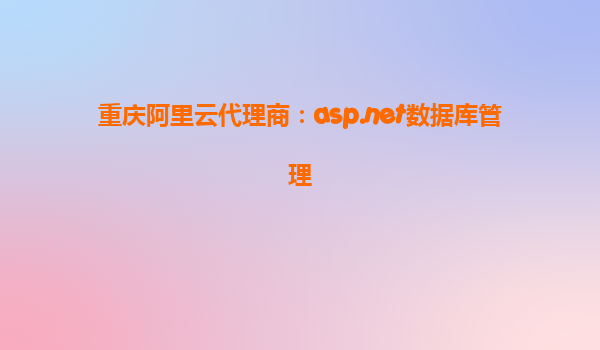 重庆阿里云代理商:ASP.NET数据库管理的优势与应用