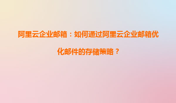 阿里云企业邮箱:如何通过阿里云企业邮箱优化邮件的存储策略