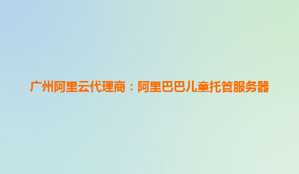 广州阿里云代理商:阿里巴巴儿童托管服务器