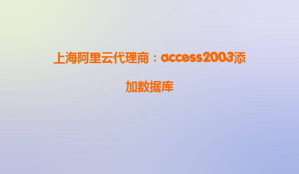 上海阿里云代理商:access2003添加数据库的步骤与阿里云优势分析
