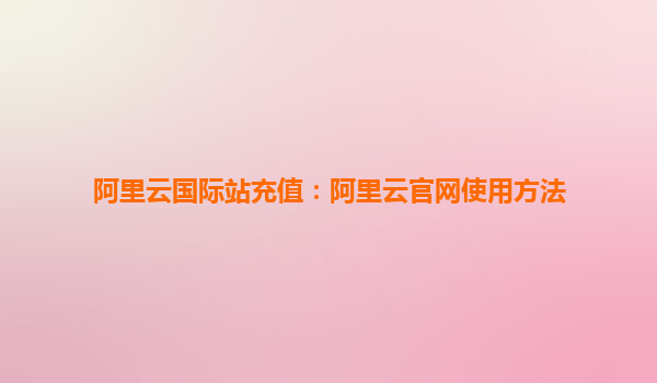 阿里云国际站充值使用指南