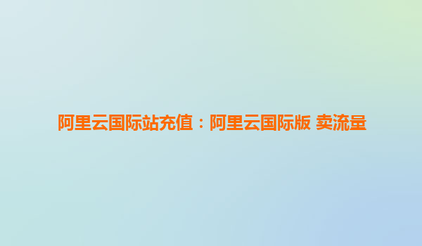 阿里云国际站充值:阿里云国际版卖流量的优势与好用之处