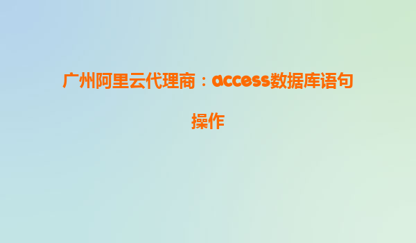 广州阿里云代理商:Access数据库语句操作与阿里云优势结合