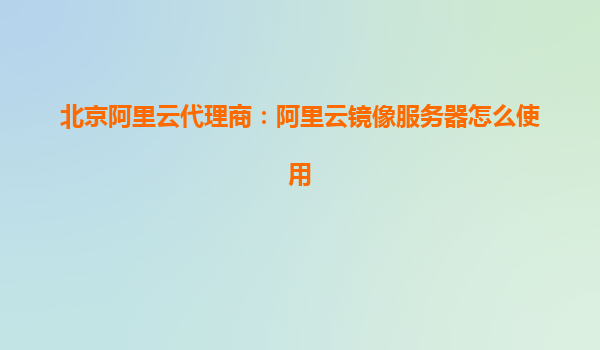 北京阿里云代理商:阿里云镜像服务器怎么使用