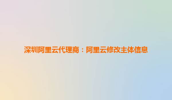 深圳阿里云代理商:阿里云修改主体信息的优势与便捷