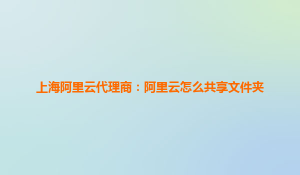 上海阿里云代理商:阿里云怎么共享文件夹