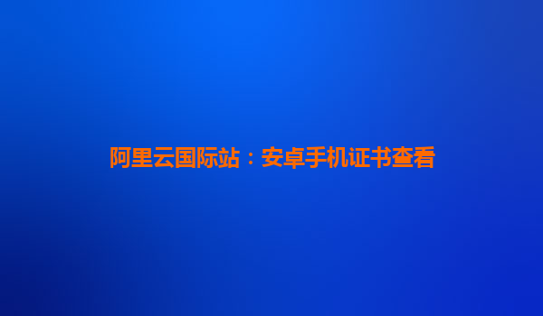 阿里云国际站不仅提供了强大的云安全服务,还可以帮助用户管理和查看安卓手机的证书。通过以下步骤,用户可以轻松查看自己的手机证书: