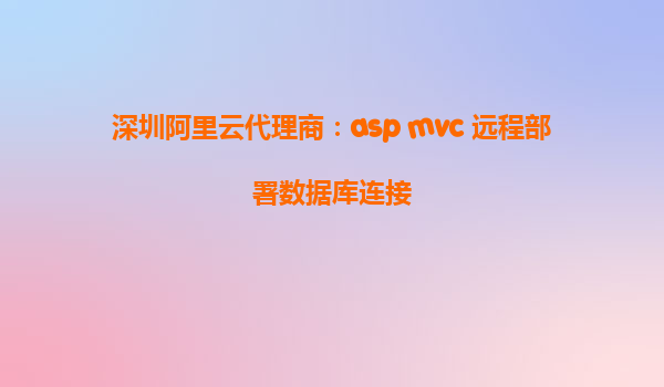 深圳阿里云代理商:ASP MVC远程部署数据库连接的优势与实践