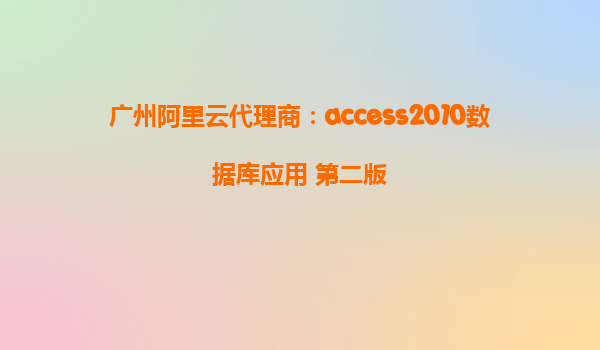 广州阿里云代理商:Access 2010数据库应用 第二版