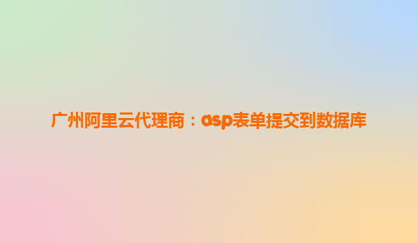 广州阿里云代理商:ASP表单提交到数据库的实现与阿里云优势