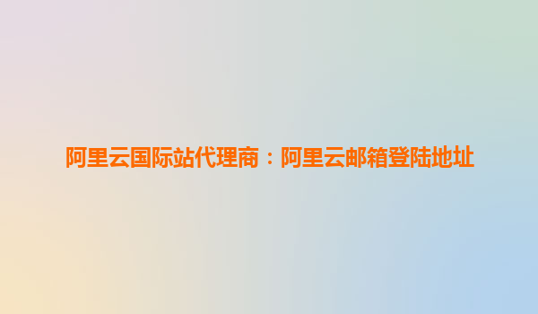 阿里云国际站代理商:阿里云邮箱登陆地址及其优势