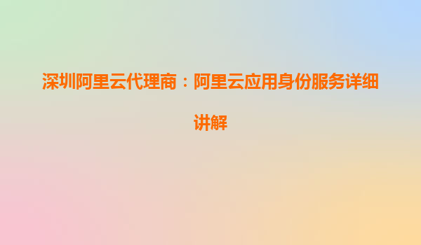 深圳阿里云代理商:阿里云应用身份服务详细讲解