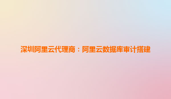 深圳阿里云代理商:阿里云数据库审计搭建